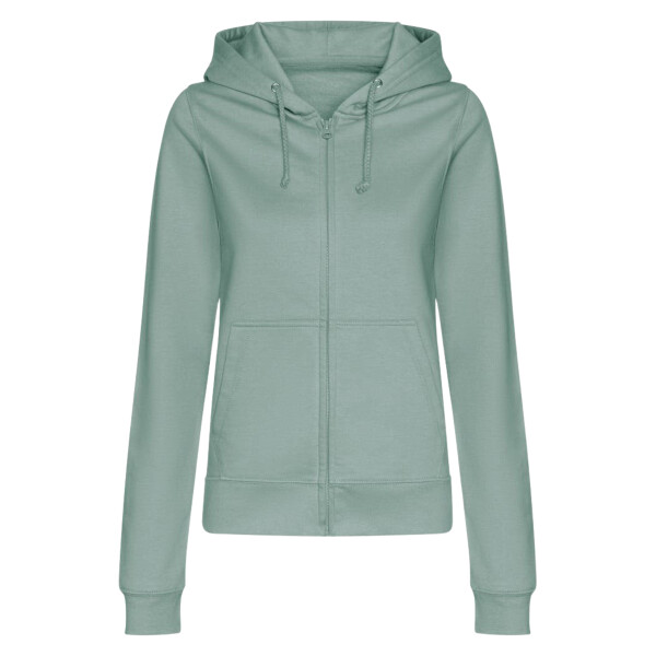 Full-zip zoodie. Women’s relaxed fit. Covered main plastic YKK zip. Twin-needle stitching detail. Double-fabric hood. Self-coloured drawcords. Kangaroo pouch pockets. Simple tear-out label makes it perfect for rebranding. Brushed inner fleece. Ribbed cuffs and hem. Soft cotton-faced fabric creates the ideal printing surface.