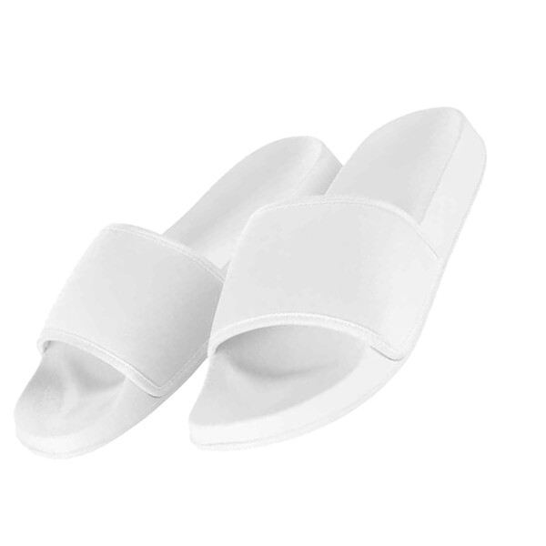 Slip-on style. Wide, printable strap. Moulded footbed. Impact-absorbing flat sole. Lightweight.