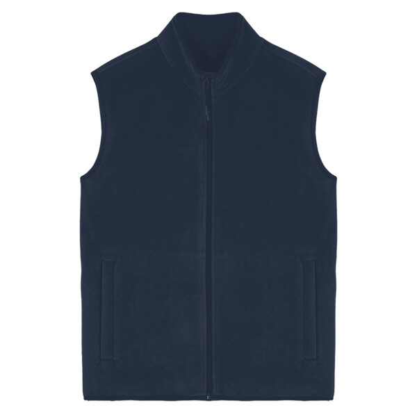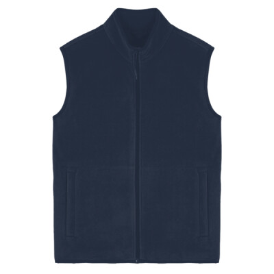 Sleeveless. Elastic binding at neck edge, armhole and hem. Inside back neck grosgrain loop. Nylon coil zip with metal zip pull and cord ending. Brushed fabric with anti-pilling finish on the inside and outside. Front side welt pockets with zip opening. Inside back neck tape in recycled polyester.